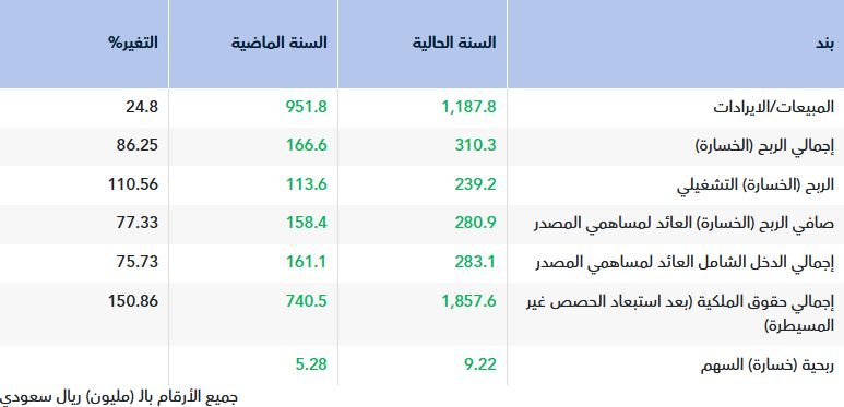 وأظهرت بيانات الشركة ارتفاع إجمالي المبيعات/الايرادات بنسبة 24.8% إلى 1.19 مليار ريال خلال عام 2025، مقارنة بـ 951.8 مليون ريال في عام 2024، في ظل زيادة الطلب على الوحدات السكنية والانشطة العقارية الاخرى.