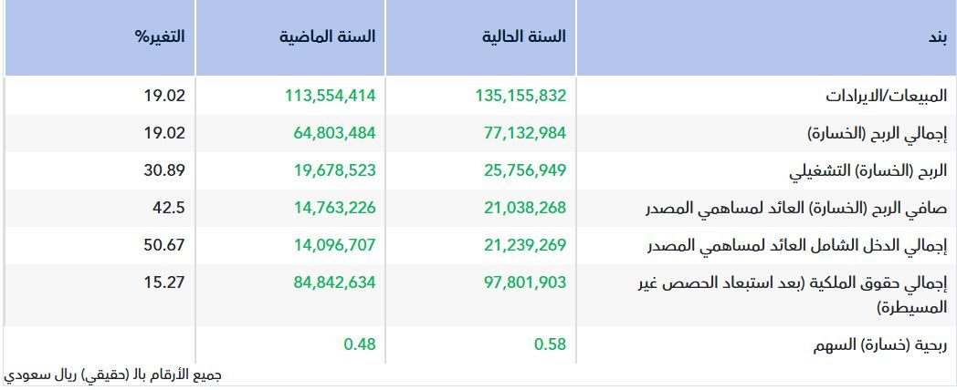 ووفقا للبيانات المالية للشركة اليوم الأحد ، على "تداول" أن صافي الربح العائد لمساهمي المصدر بلغ 21.04 مليون ريال، مقابل 14.76 مليون ريال في عام 2024.