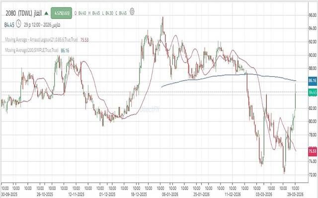 مباشر للأبحاث: أظهر سهم شركة الغاز والتصنيع الأهلية "الغاز" أداءً إيجابياً عقب التراجع الملحوظ الذي شهده خلال شهر فبراير 2026، حيث جاءت تحركاته متوافقة مع رؤيتنا السابقة؛ إذ أسهم اختراق مستوى المقاومة عند 77.40 ريال في دفع السهم نحو مستويات 79.15 – 83.60 ريال.