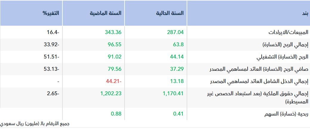 وعزت الشركة سبب إنخفاض صافي الربح خلال العام الحالي مقارنة بالعام السابق بشكل رئيسي إلى إنخفاض المبيعات وإنخفاض الإيرادات الأخرى.