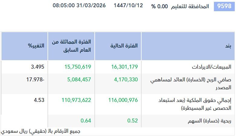 وارتفعت إيرادات الشركة بنسبة 3.5% إلى 16.3 مليون ريال، مقابل 15.75 مليون ريال خلال الـ 6 أشهر المنتهية في 31 يناير/ كانون الثاني 2025م، نتيجة زيادة إيرادات الرسوم الدراسية في قطاع التعليم نتيجة زيادة أعداد الطلاب.