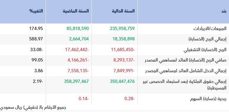 وأظهرت نتائج الشركة ارتفاع إجمالي المبيعات/الايرادات بنسبة 174.95%، إلى 235.96 مليون ريال مقابل 85.82 مليون ريال عام 2024، وذلك بدعم مبيعات الشركات التابعة.