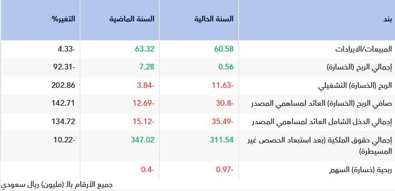 وأظهرت نتائج الشركة بالعام 2025، تراجع إجمالي المبيعات/الايرادات بنسبة 4.33%، إلى 60.58 مليون ريال مقابل 63.32مليون ريال في عام 2024.