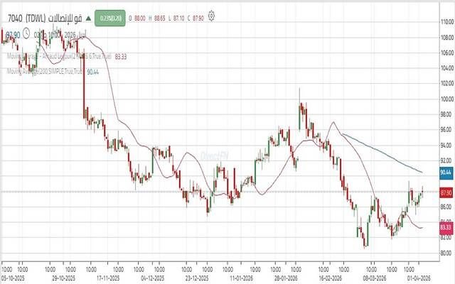 وحاليًا، يمثل الإغلاق أعلى مستوى 87.80 على الإطار الزمني لأربع ساعات إشارة داعمة لاحتمالات الصعود نحو مستويات 89.50 – 90.30، ومع استمرار الزخم قد تمتد الحركة إلى 91.80 – 94.40 ريال.
