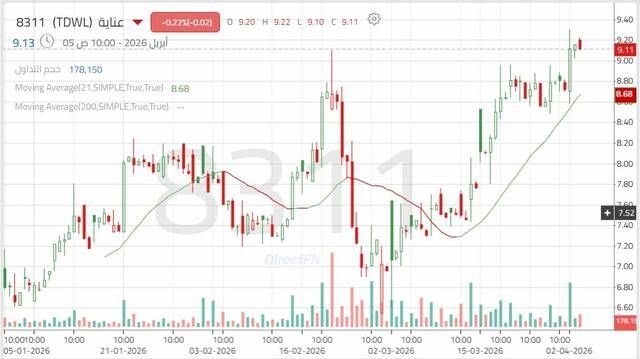 حالياً، يقترب السهم من مواجهة مستوى مقاومة هامة قرب 9.27 ريال، والذي يمثل مستوى محورياً؛ حيث إن تجاوزه قد يعزز من فرص استئناف الأداء الإيجابي واستهداف مستويات 9.50 – 9.75 ريال، تليها منطقة 9.95 – 10.20 ريال.