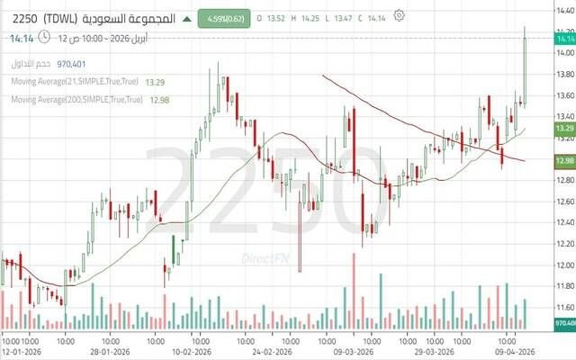 وتشير الحركة السعرية لسهم المجموعة السعودية خلال عام 2026 إلى تشكل اتجاه صاعد ثانوي؛ وذلك عقب الارتداد من منطقة طلب محورية تمركزت بين مستويات 11.45 و12.00 ريال إلا أن هذا الصعود اتسم بضعف نسبي في الزخم، حيث أظهر السهم تكوين قمم متقاربة؛ وهو ما يعكس محدودية القوة الشرائية.