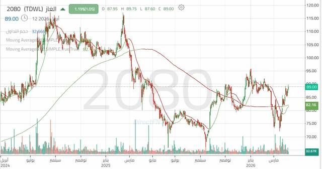 واختراق مستوى 88.70 ريال والثبات أعلاه بأحجام تداول قوية قد يدعم استمرار الصعود نحو 90.70 – 92.50 ريال، وفي حال استمرار الزخم قد يمتد الارتفاع إلى 94.35 ريال.