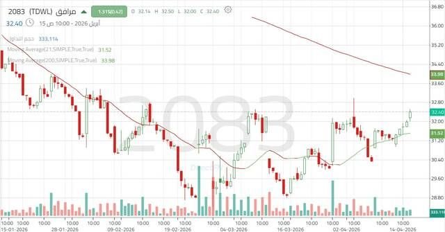 يتداول سهم مرافق في اتجاه هابط منذ بداية عام 2026، حيث شهد تراجعاً حاداً دفعه لتسجيل أدنى مستوياته التاريخية عند 26.84 ريال خلال شهر مارس.