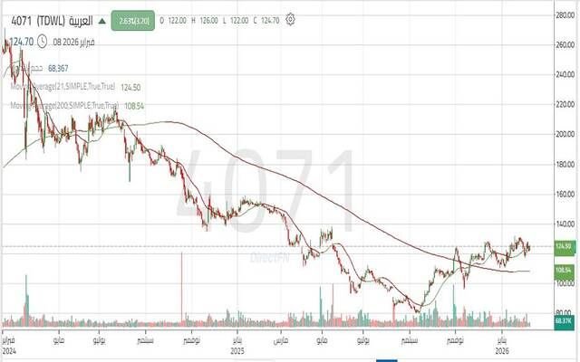 وأشارت "مباشر للأبحاث"، إلى أن تجاوز ذلك المستوى بأحجام تداول مرتفعة قد يدفع السعر نحو 131.20 ريال، يليه مستوى 136.70 ريال – 137.00 ريال، بينما الثبات دون مستوى دعم 120 ريالاً، يضعف فرص الصعود على المدى القريب بل وقد يؤدي إلى التراجع لدعم 117.70 ريال.