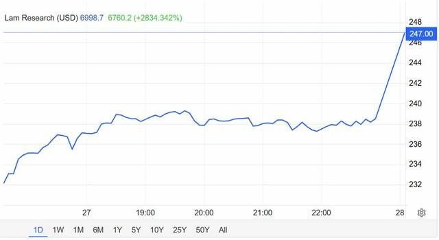 شهد سهم LRCX ارتفاعًا ملحوظًا خلال شهري يناير وفبراير في عام 2025 ثم تهرض السعر لضغوط بيعية حادة بداية من مارس ليصل لقاع 56.00$، حيث نجح السعر في بناء قاعدة سعرية قوية انطلق منهه في اتجاه صاعد قوي محققًا قمة تاريخية جديدة بالقرب من 251.00$ في عام 2026، و ذلك بالإضافة لارتفاع ونمو تجاوز 3 مرة مقارنة بمستوياته في بداية عام 2025.
