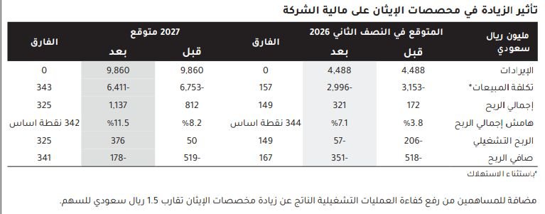 ولفتت الجزيرة كابيتال، إلى أنها تتوقع أن يحقق ذلك وفورات ملموسة في تكلفة المبيعات بنحو 157 مليون ريال سعودي خلال النصف الثاني 2026، و343 مليون ريال سعودي خلال السنة المالية 2027.
