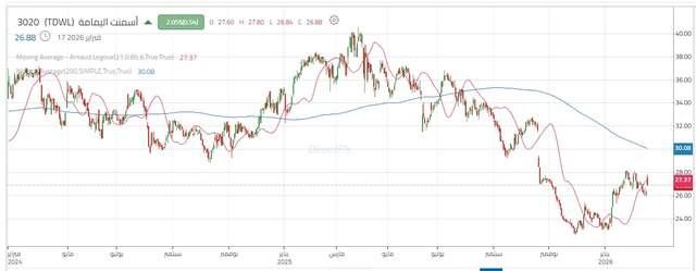 مباشر للأبحاث: يتحرك سهم أسمنت اليمامة ضمن اتجاه هابط واضح، حيث يتداول السعر دون المتوسط المتحرك الرئيسي؛ ما يعكس استمرار سيطرة الضغوط البيعية على المدى المتوسط.