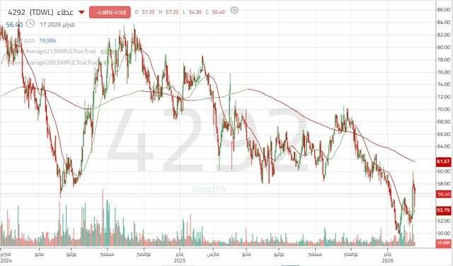 مباشر للأبحاث: تعرض سهم عطاء إلى ضغط بيعي حاد خلال الربع الأخير من عام 2025، ونجح السهم في الارتداد خلال الجلسات الماضية مع زيادة ملحوظة في أحجام التداول. وللعودة إلى الإيجابية يشترط الثبات أعلى 58.90 ريال، حيث يواجه السعر حالياً مقاومة المتوسط المتحرك ومقاومة المستوى الفني ما يمنحه أهمية فنية مضاعفة.