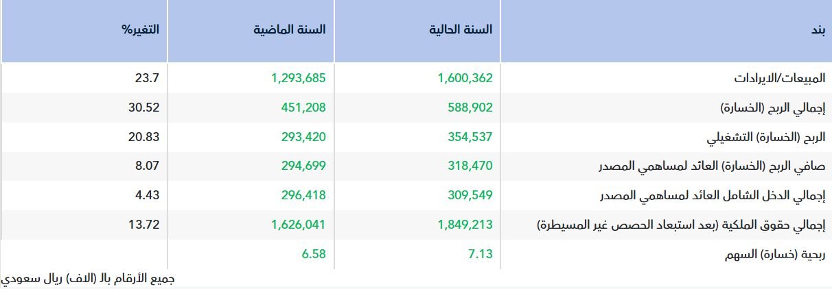 كما سجلت الشركة ارتفاع الربح التشغيلي مدعومًا بنمو إجمالي الربح وانخفاض مخصصات الخسائر الائتمانية المتوقعة، وارتفعت الأرباح التشغيلية قبل الضرائب والفوائد والإهلاك والاستهلاك لتصل إلى 465.2 مليون ريال (عام 2024: 377.4 مليون ريال)، مع استقرار هامش الأرباح التشغيلية عند 29%، دون تغيير يذكر عن العام الماضي.