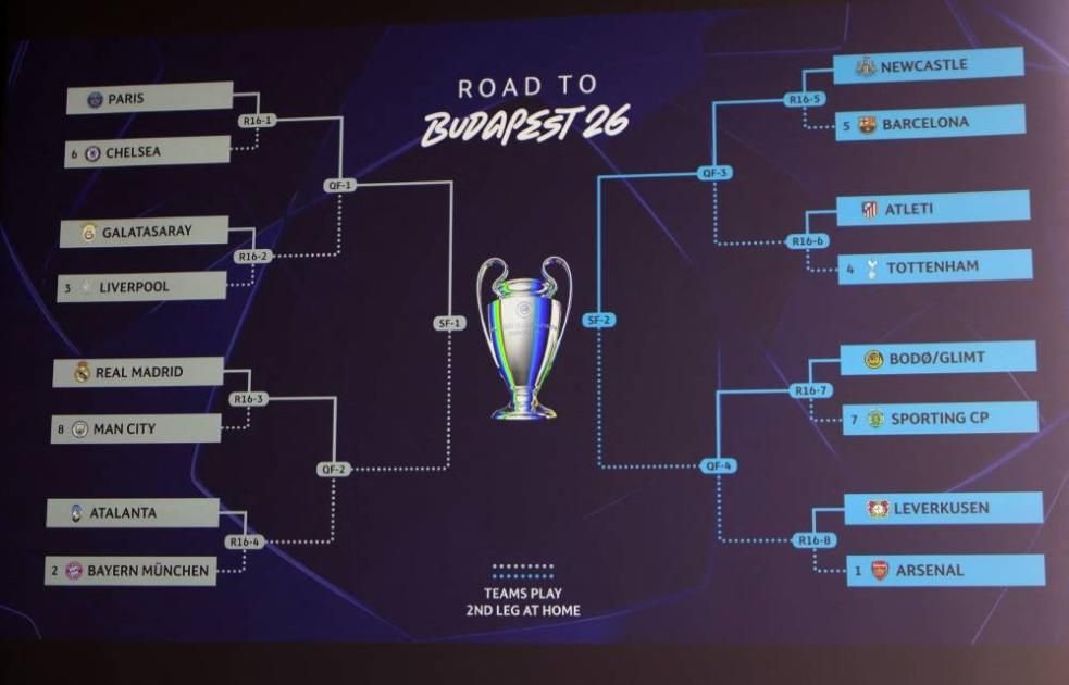 كما كانت القرعة رحيمة مع ليفربول حين يلتقي غلطة سراي التركي، في حين يلعب أرسنال مع باير ليفركوزن الألماني.