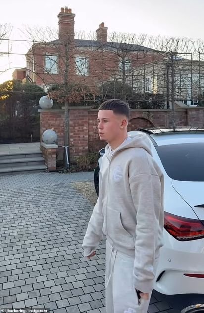 رحب كاي ابن أسطورة مانشستر يونايتد واين روني بالحلاق توم جاكسون في منزل العائلة، وركن الحلاق سيارته بالقرب من أسطول سيارات روني ومنها سيارتا رنج روفر(90 ألف استرليني ).