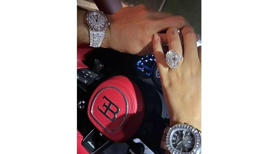 استعرض النجم البرتغالي كريستيانو رونالدو وخطيبته جورجينا ثروتهما بصورة نشرتها عارضة الأزياء الإسبانية على حسابها في إنستغرام يظهر فيها الثنائي في سيارة البوغاتي (13 مليون دولار ) وساعتيهما الثمينتين وخاتم الخطوبة الماسي، ليبلغ مجموع ماعرض في الصورة 20 مليون دولار.