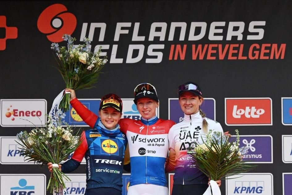 أحرزت الهولندية كارلاين سوينلز، لاعبة فريق الإمارات القابضة للدراجات الهوائية للسيدات، المركز الثالث في منافسات سباق «إن فلاندرز فيلدز»، الذي أُقيم أمس في بلجيكا ولمسافة 135.2 كم.