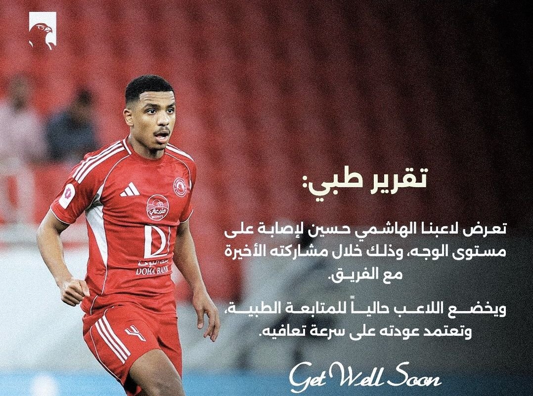 أعلن النادي العربي عن إصابة مدافعه الدولي الهاشمي حسين، وأوضح النادي، في بيان له، أن الهاشمي البالغ من العمر 23 عاما، أصيب خلال مشاركته الأخيرة في منافسات الدوري، ويخضع حاليا لمتابعات طبية، مشيرا إلى أن عودته للملاعب تعتمد على سرعة تعافيه، ويحتل النادي العربي المركز السادس في جدول ترتيب فرق الدوري برصيد 32 نقطة.