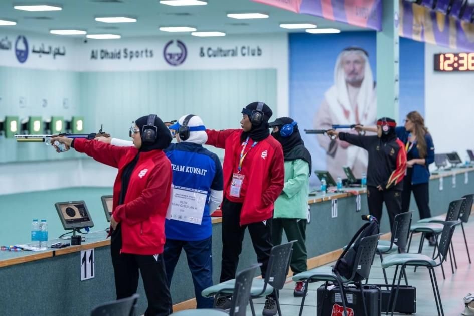 وتُقام منافسات المسدس «10 أمتار هوائي» في صالة الرماية بنادي الذيد الثقافي الرياضي، بمشاركة 46 لاعبة يُمثّلن خمسة فرق من خمس دول عربية.