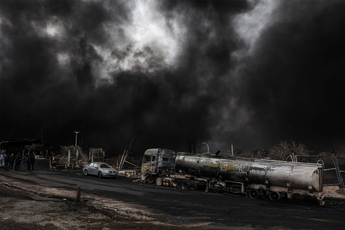 وأظهرت مقاطع مصورة متداولة على وسائل التواصل الاجتماعي كرة نارية ضخمة وسحبا كثيفة من الدخان الأسود تتصاعد فوق المدينة. وقال سكان إن السماء بدأت تمطر مطراً أسود بسبب اختلاط الدخان مع الغازات.