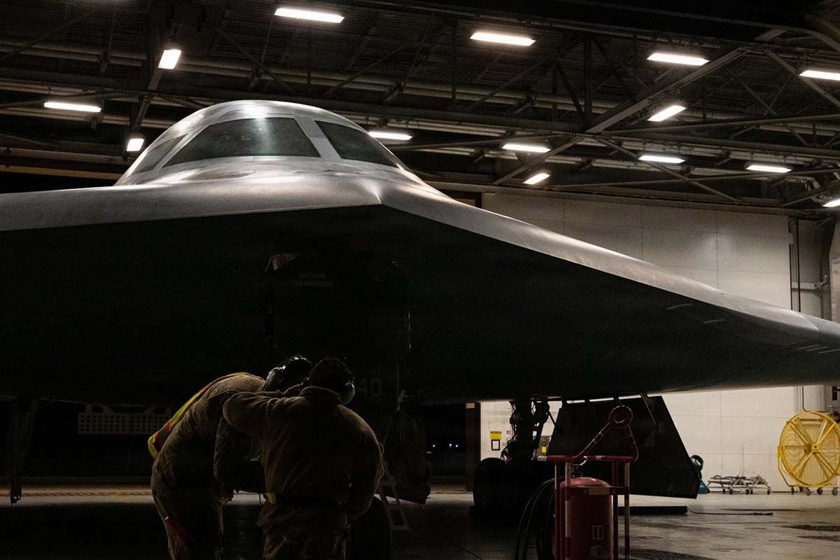وكتبت القيادة عبر المنصة: «رؤساء أطقم من القوات الجوية الأميركية أثناء إجرائهم الفحوصات الفنية النهائية لقاذفة B-2 سبيريت الشبحية، تمهيداً لمهمة في إطار عملية الغضب الملحمي».